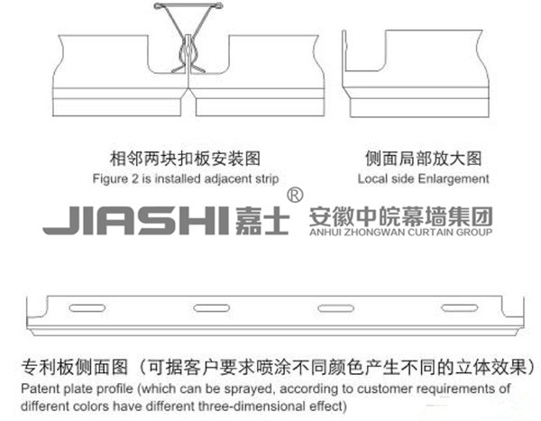 鋁天花吊頂結構嚴密、防水性強:安裝結構為防風式特殊龍骨卡扣式結構,拼密性很強,絕無間隙,防水性強; 高深龍骨、防風性強:高深龍骨上有固定模數的卡齒,金屬天花針對防風性每個卡齒旁都設計有防風卡碼,適合戶外裝飾,安全性高,可適合戶外裝置并可靈活組裝使用,為設計師提供更廣闊的構思空間。