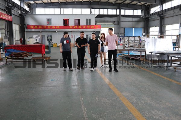 考察組先后對我司的生產設備和生產流水線進行了參觀,從生產原料,到剪裁、成型和噴涂等工藝都有了詳細的了解。