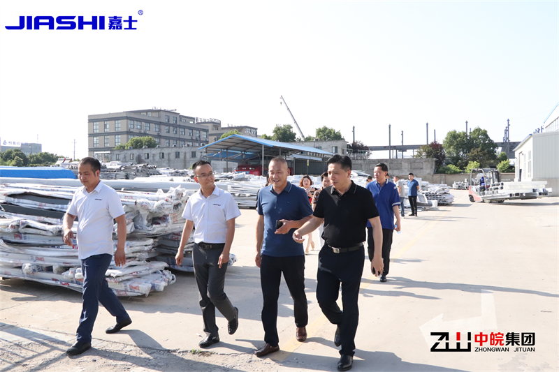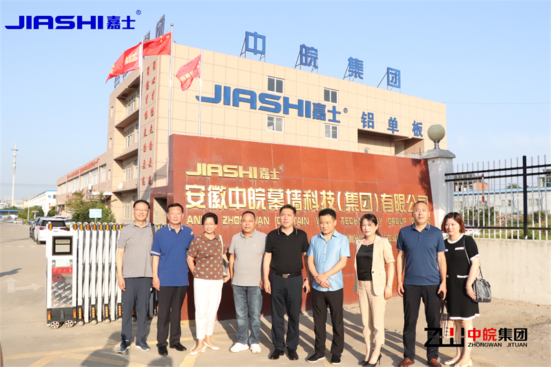 2022年6月17日安徽大劇院季總、張總等領(lǐng)導(dǎo)來到了中皖集團(tuán)旗下-安徽嘉士新型材料有限公司鋁單板生產(chǎn)基地。